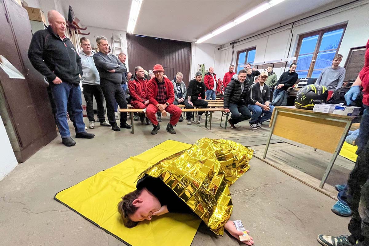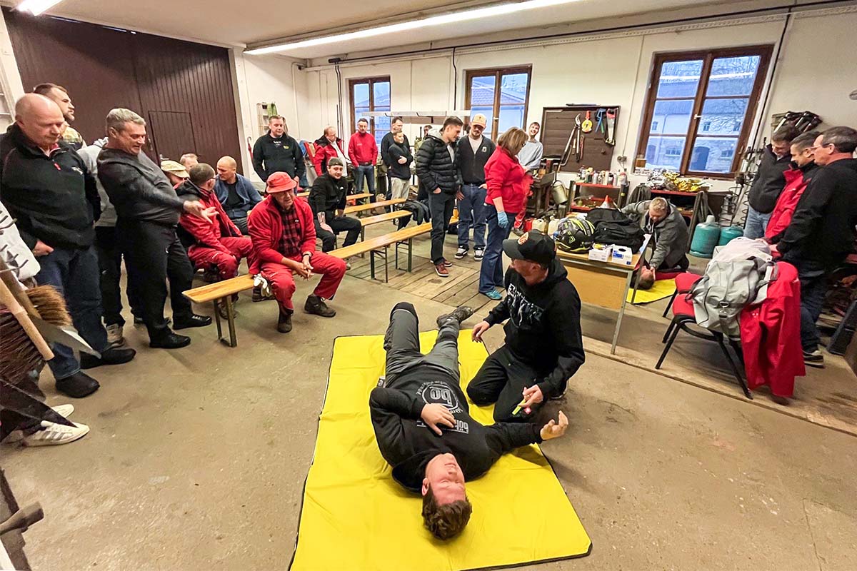 Nach der gemeinsamen Begrüßung startete das Programm mit einer Schulung zu den Grundregeln der Ersten Hilfe, durchgeführt vom DRK Sebnitz. Dabei wurden sowohl theoretische Inhalte vermittelt als auch praxisnahe Situationen besprochen, die im Arbeitsalltag auftreten können.