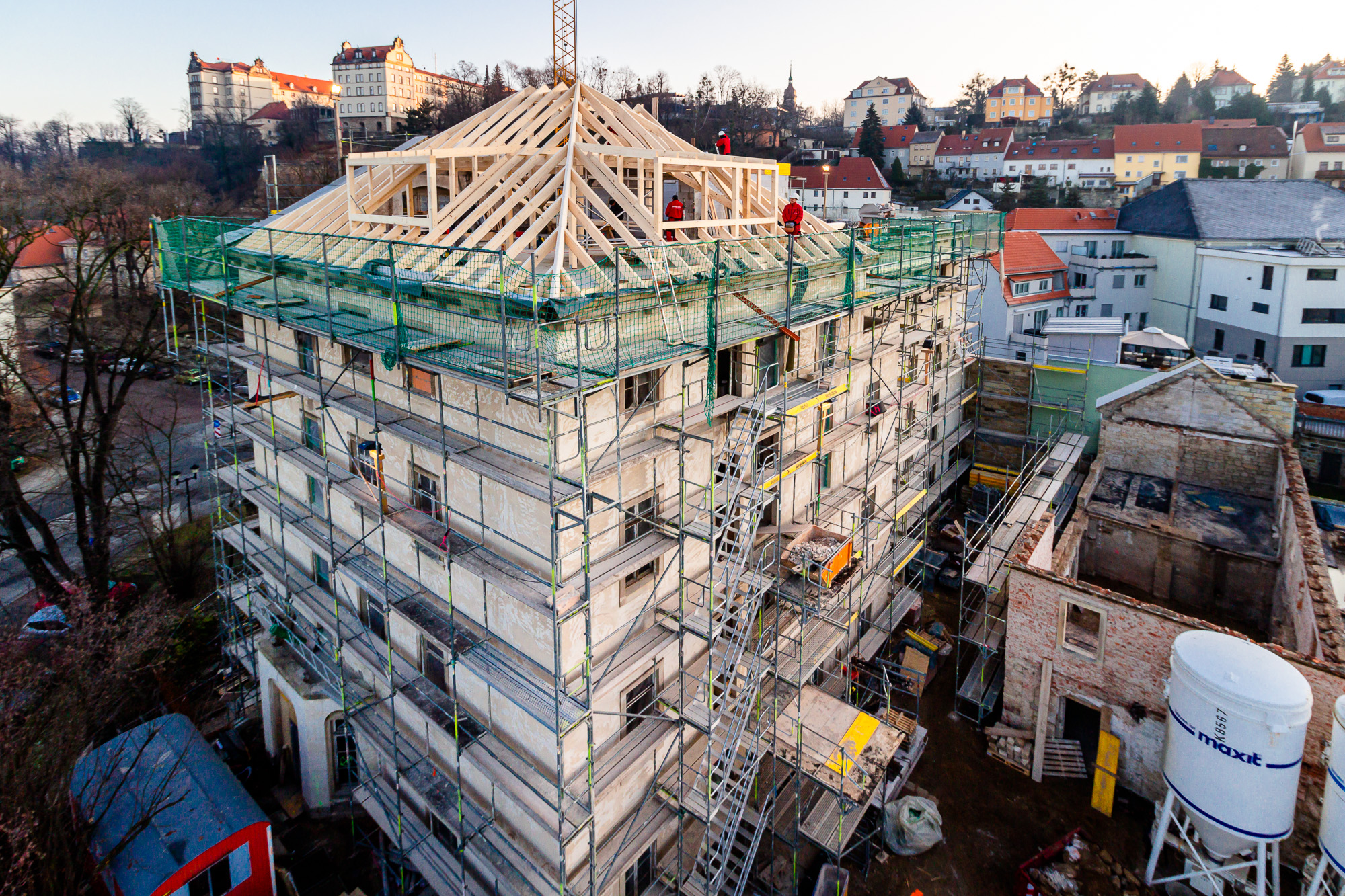 Die Rohbauarbeiten wurden im Mai fertiggestellt und ein altes Gebäude bietet wieder neuen Lebensraum.