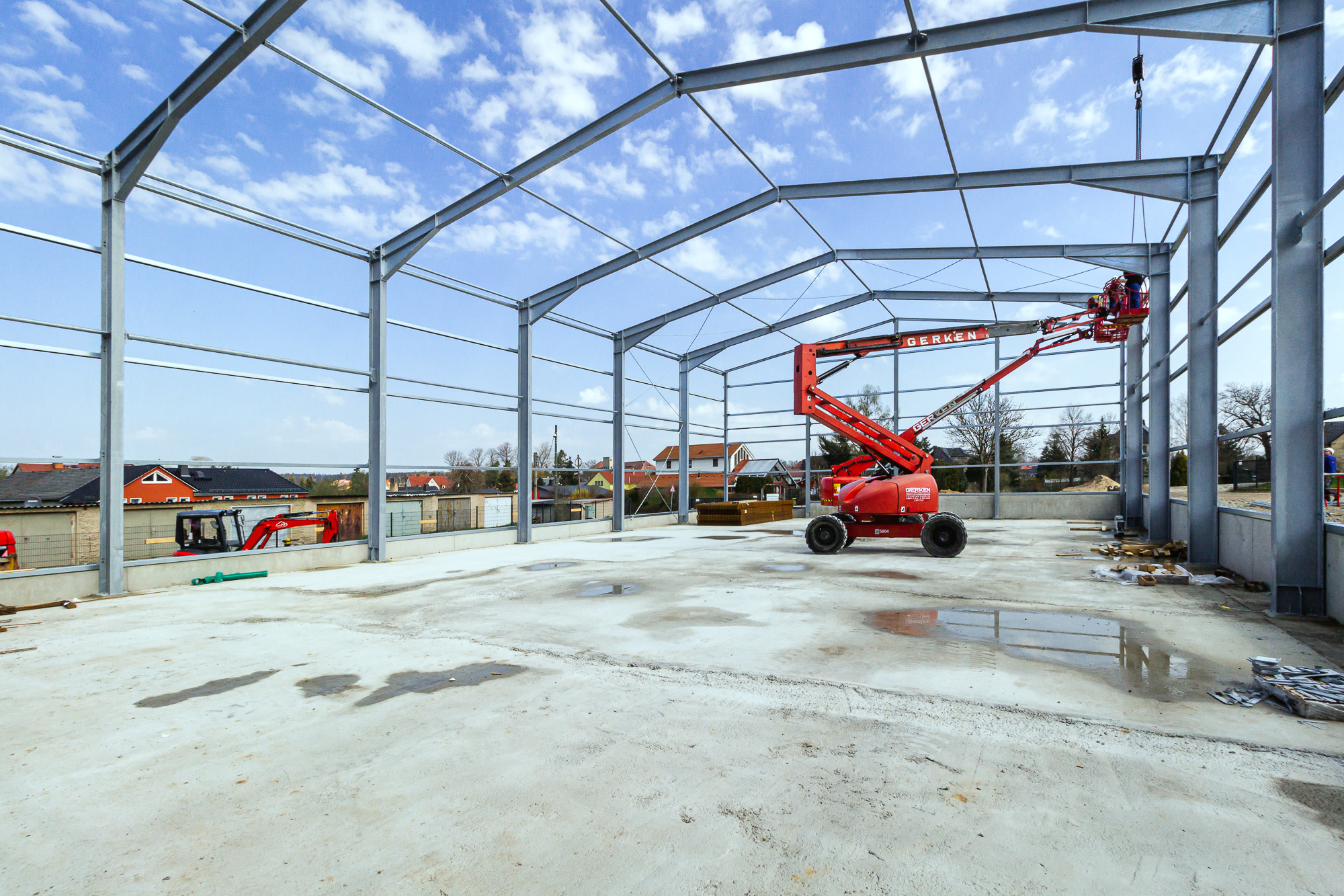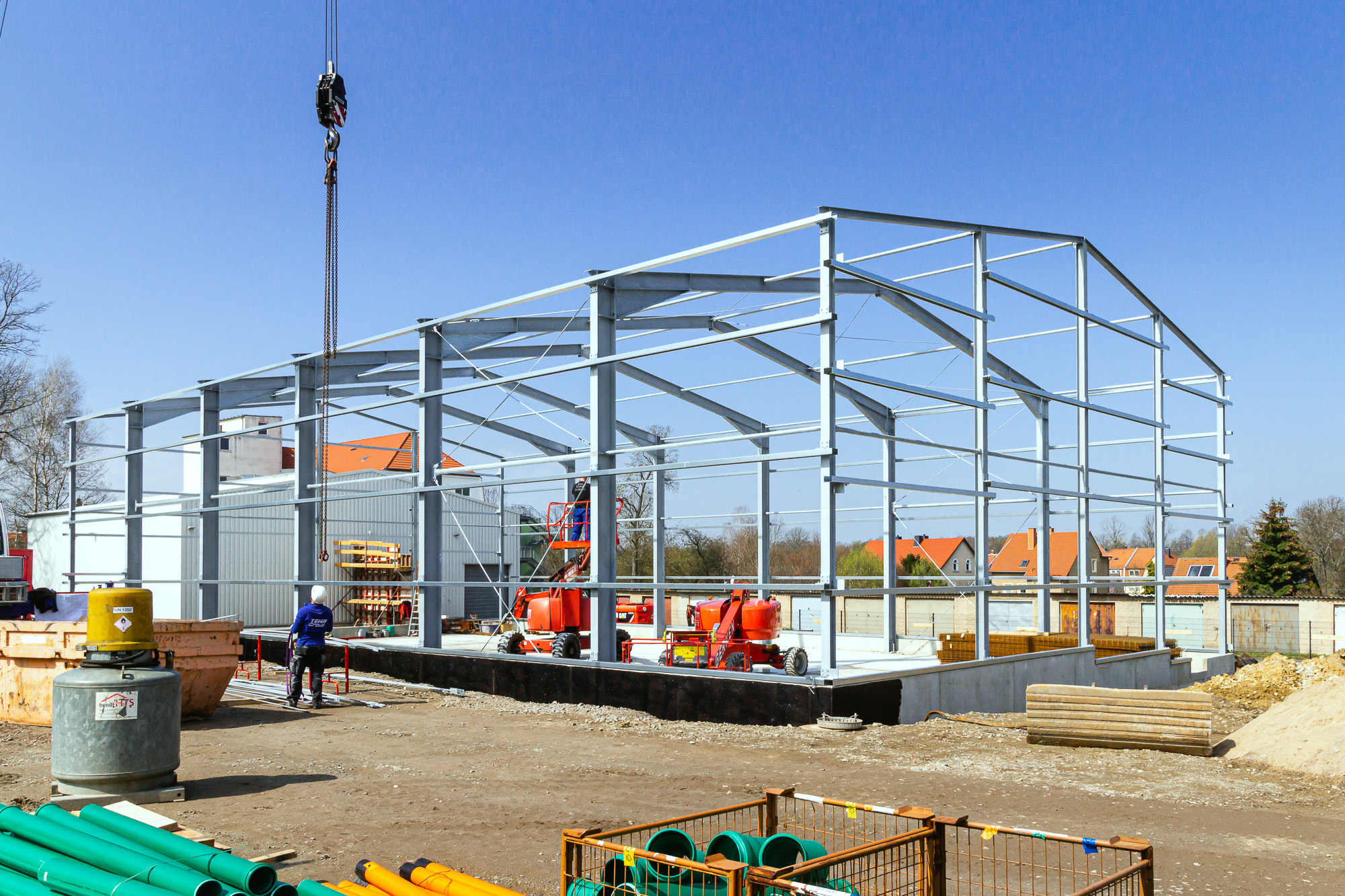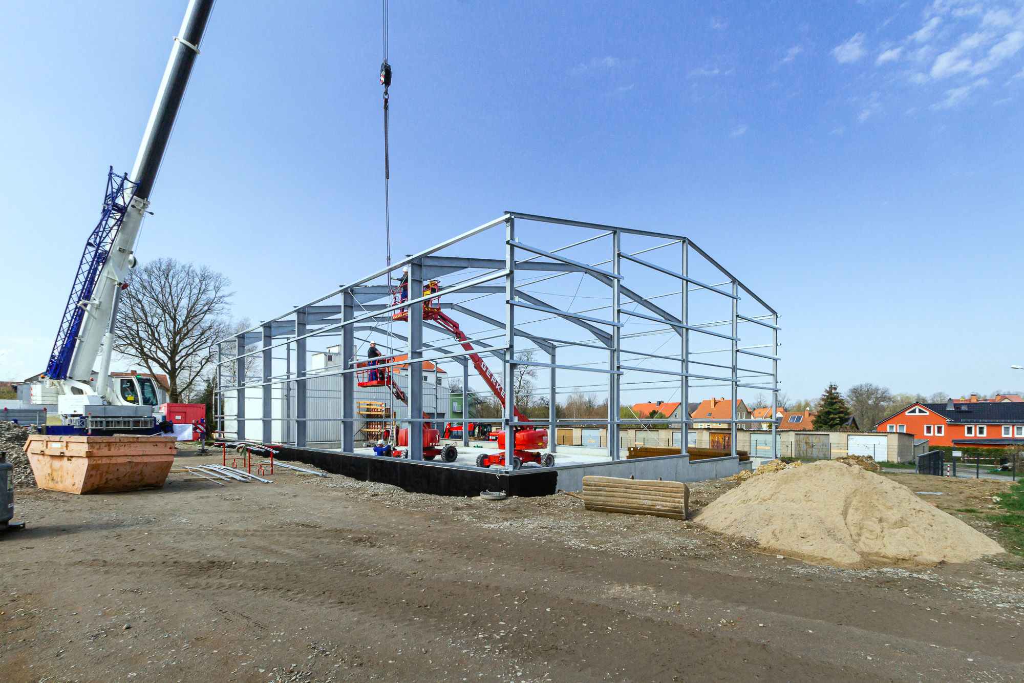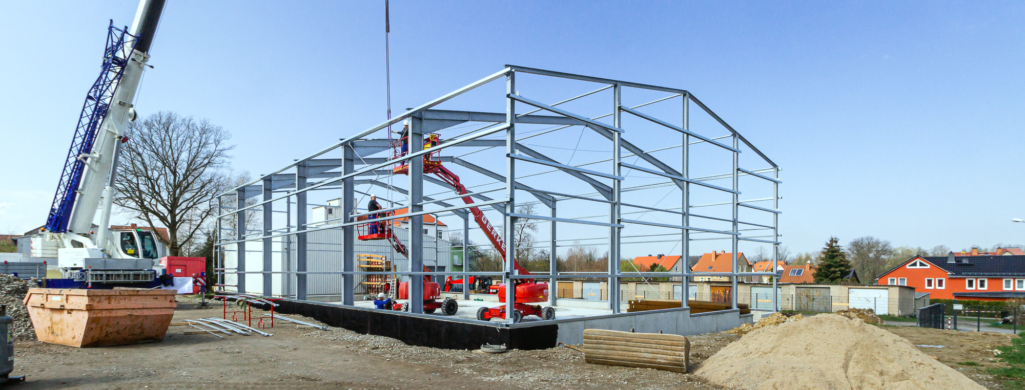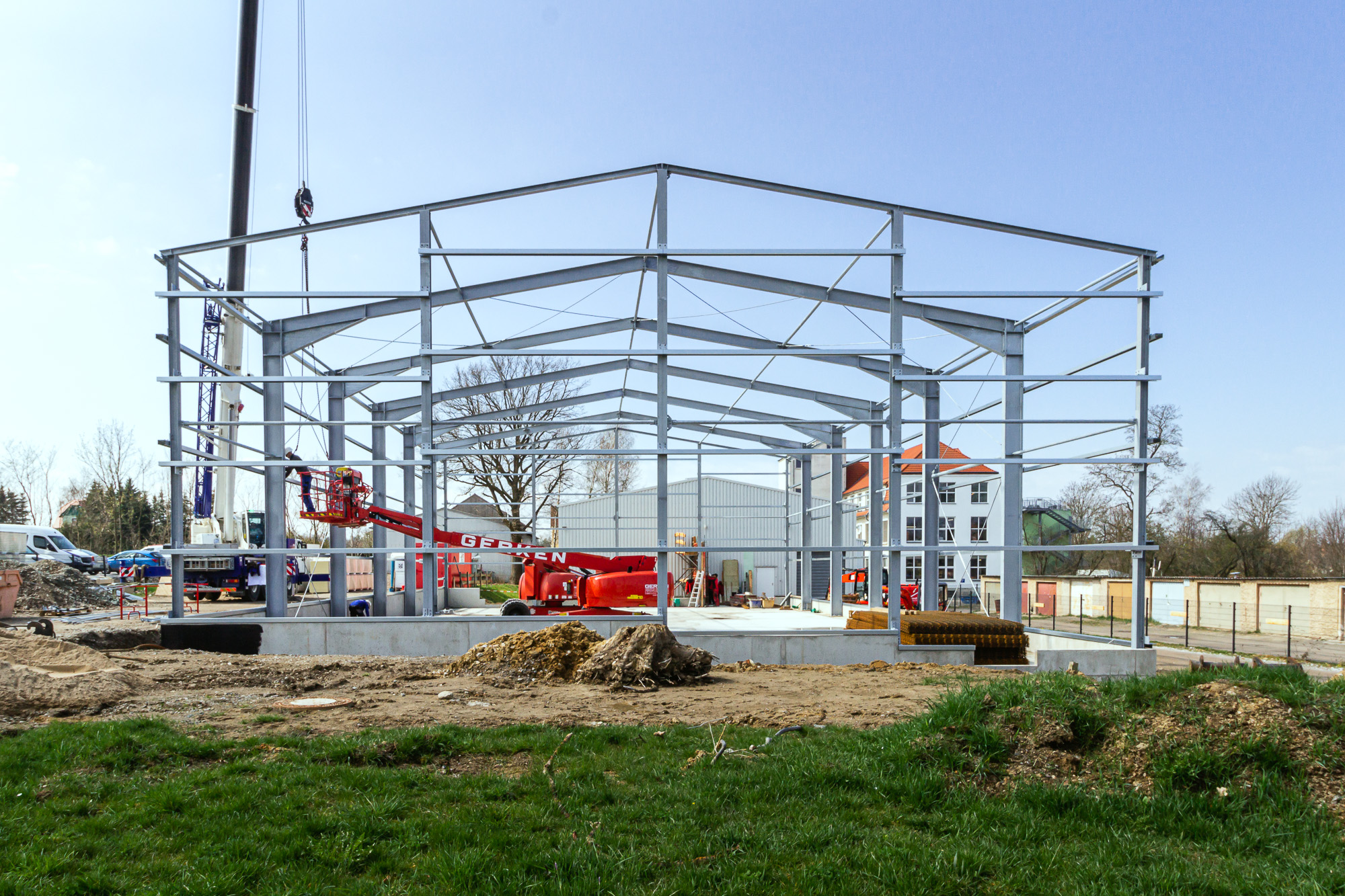 Für unseren langjährigen Stammkunden, die Firma SHZ Sächsische Hebe- und Zurrtechnik GmbH in Großröhrsdorf, errichteten wir in nur sieben Monaten den Rohbau für eine neue Lagerhalle mit 640 m².