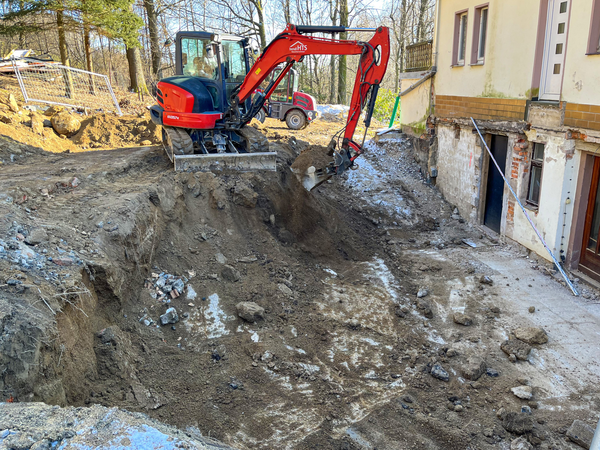 Künftig soll das Untergeschoss des Waldhauses einen Wellnessbereich beherbergen. Das ebenso von uns errichtete Nebengebäude in Massivbauweise wird zudem Platz für zwei Ferienwohnungen mit jeweils 40 m² Grundfläche bieten.
