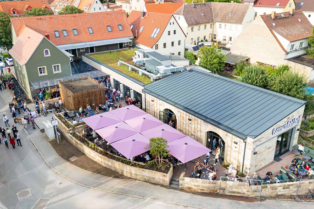 Das frühere „Fritzsches Gasthaus“ wurde umfassend saniert und erweitert – heute vereint es Wirtshaus, Brauerei und Herberge unter einem Dach. Neben Innen- und Außensitzplätzen, saisonalen Speisen und regionalen Biersorten bietet der Ranunkelhof auch sieben gemütliche Ferienapartments mit Platz für 26 Gäste.