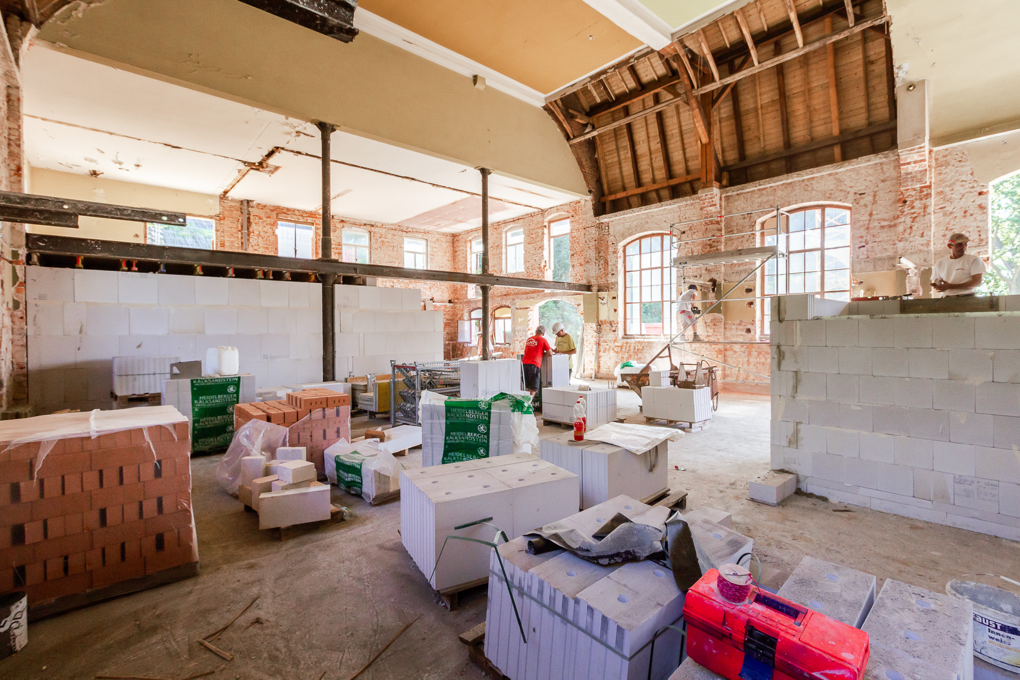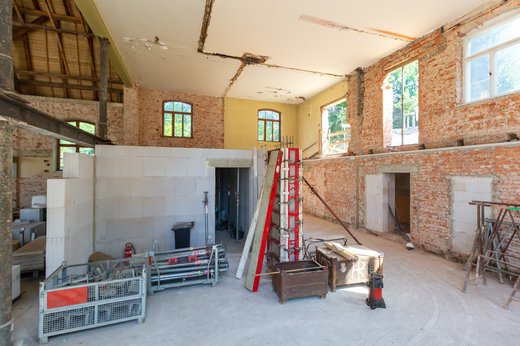 Bereits 2019 wurden wir mit den Sanierungs- und Rohbauarbeiten der „Alten Turnhalle“ in Stolpen beauftragt. In nur 7 Monaten sanierte unser Team das Gebäude aus dem Jahr 1915 und errichtete einen zweistöckigen Anbau samt Aufzug. Hierbei wurden bis zu fünf Meter hohe Ziegeldecken und runde Betonsäulen erneuert, während wir auf 2 Etagen insgesamt 101 Steigungen und Zwischenpodeste sanierten. So entstand in kurzer Zeit ein modernes Sozialzentrum mit 15 Tagespflegeplätzen, drei behinderten- und rollstuhlgerechte Wohnungen sowie einem freistehenden Aufzug.