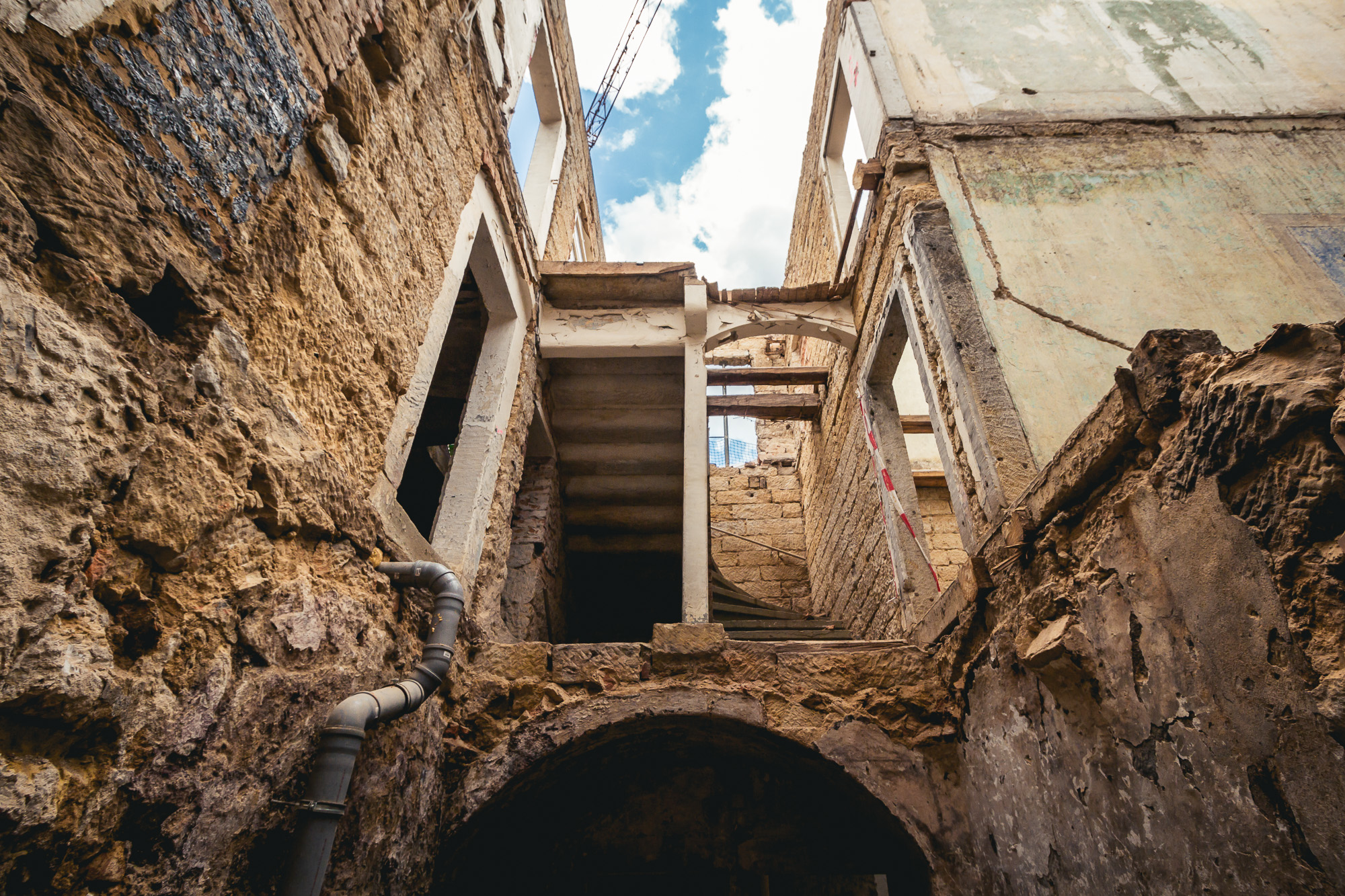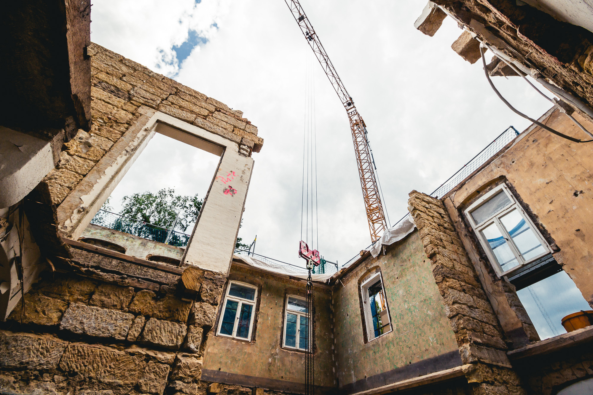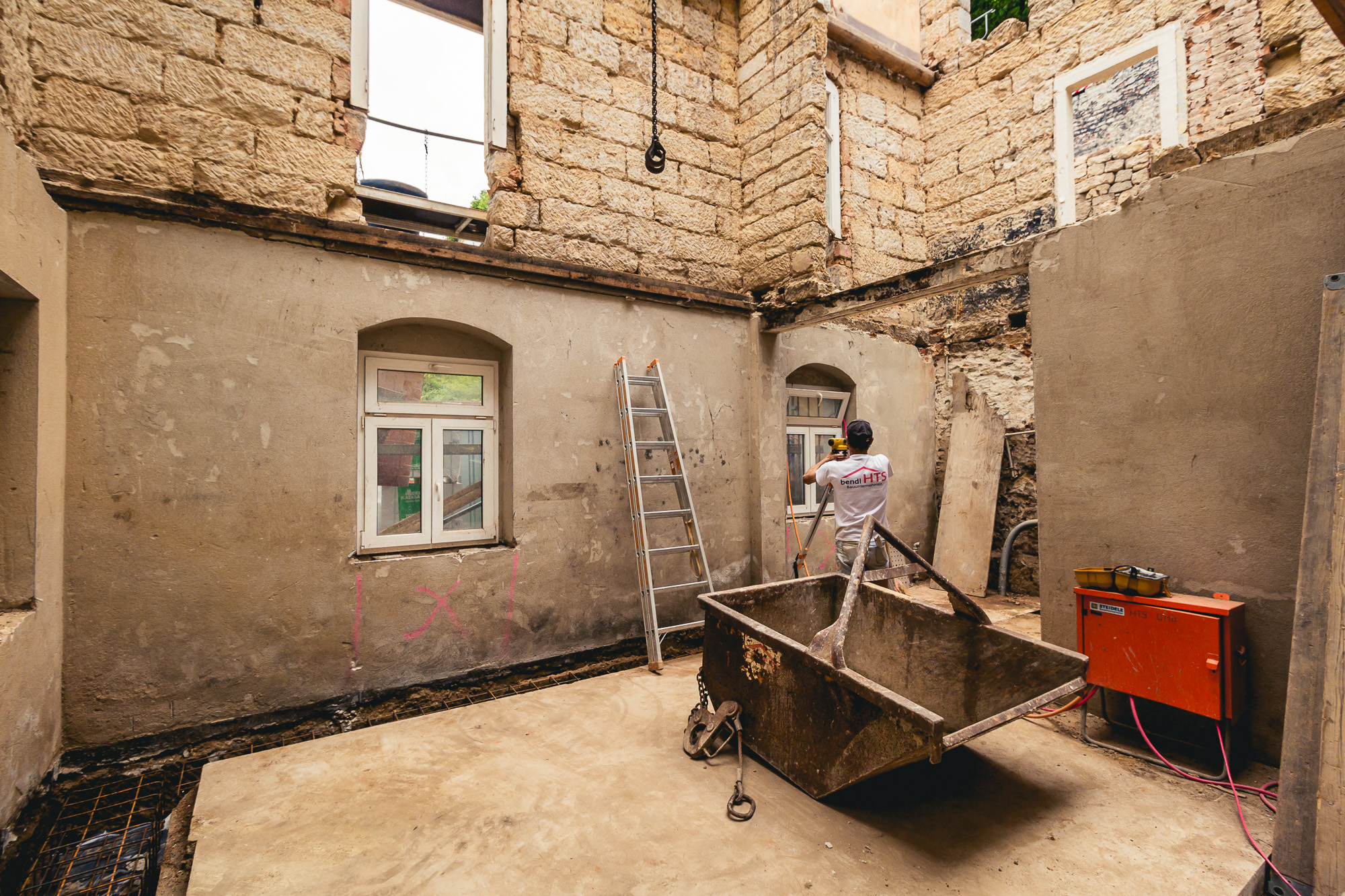 Der Umbau ist nicht ganz einfach, denn in den alten Mauern werden Fahrstuhlschacht und Stahlbetondecken eingebaut. Das Bestandsmauerwerk soll dabei so gut wie möglich erhalten werden, was nur eine Bauweise in Abschnitten möglich macht um die Stabilität nicht zu gefährden. Außerdem wird bei der Sanierung ein besonderer Wert auf die Hochwasserprävention gelegt.