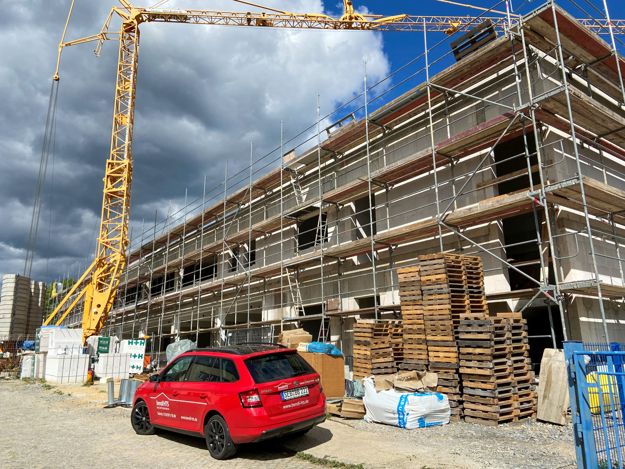 Nach dem offiziellen Spatenstich im Oktober 2021 hat das Team von Polier Sven mit dem Aushub der Baugrube begonnen. Ende Oktober übergab dieser das Bauvorhaben an seinen Kollegen Daniel der gemeinsam mit seinem Team den Rohbau schuf.